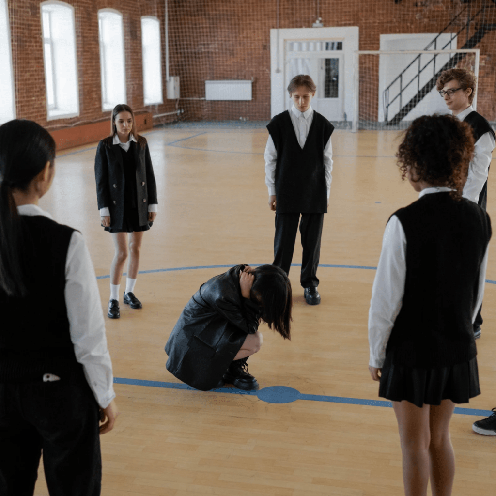 Uvodim nekoliko predstavnika pored njega za ljude koji su s njim i koje je opisao.. Oni izveštavaju da im je hladno, da se boje i takođe se okreću prema zidu i spuštaju na pod da sednu. To je vrlo čudna slika sa puno straha ugrožavanja i nasilja. Zatim postavljam tri predstavnika za neprijatelje ili agresore. Oni prvo stoje iznad potlačenih a zatim počinju da budu veoma agresivni, pokazuju da bi ih šutirali, udarali, sekli.